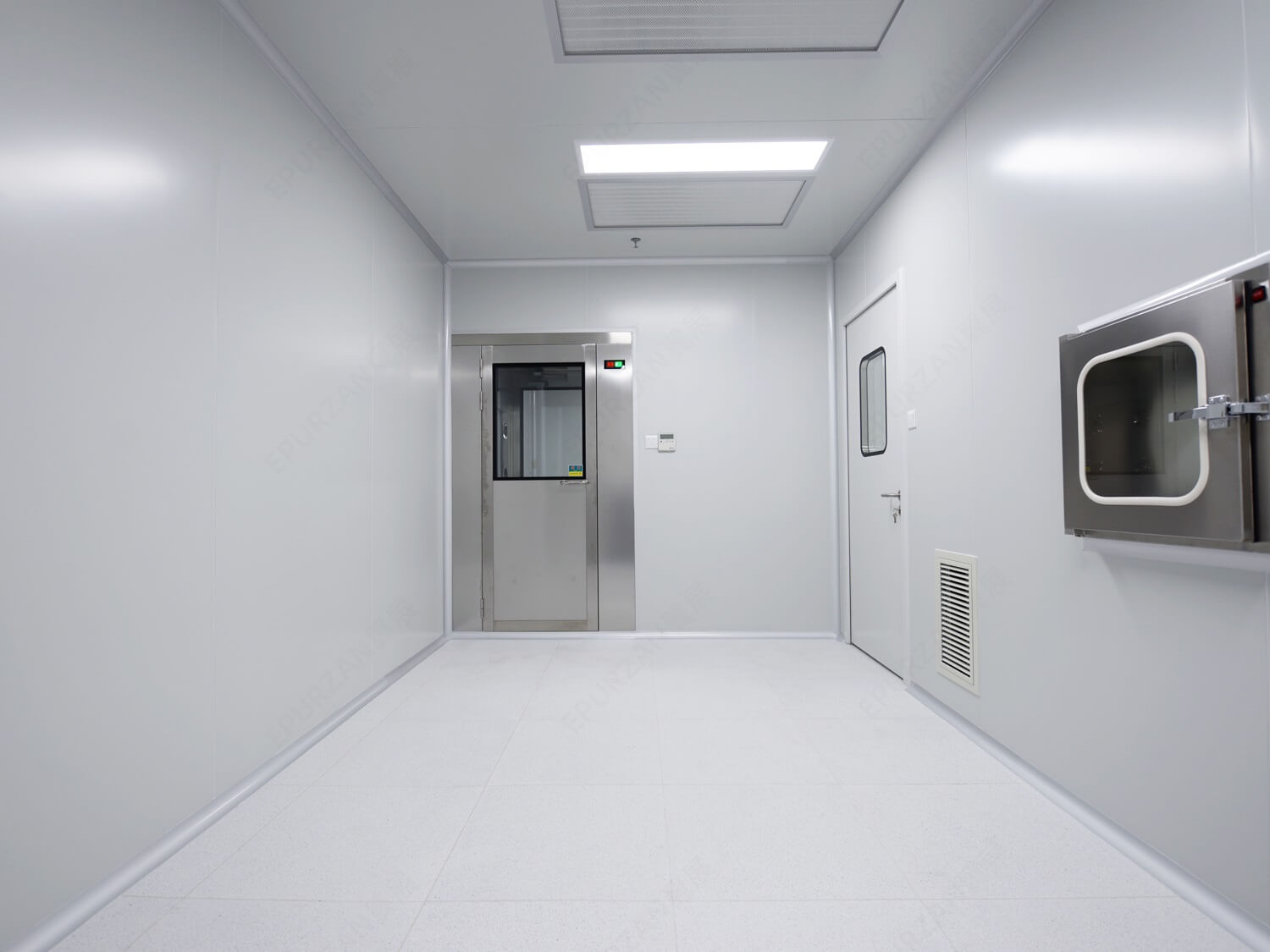 2、风淋室吹淋结束后,推开出门进入洁净无尘室。