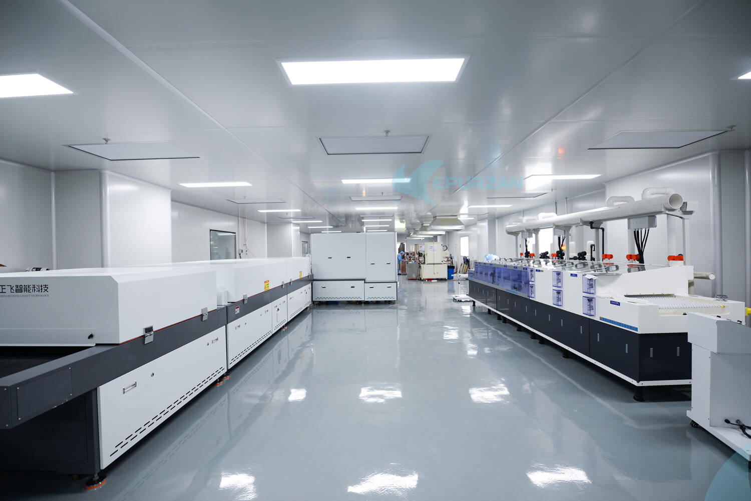 洁净室的净化空调系统除了控制受控环境的温度、相对湿度外更重要的是要控制洁净室(区)内的空气洁净度、压力或静压差。净化空调系统的空气处理过程包括热、湿处理和净化处理 (经粗效、中效或亚高效、高效或超高效过漶器过滤),有的洁净室还要根据产品生产工艺要求设置去除化学污染物的化学过滤器或淋水器等。净化空调系统送风、回风的气流组织应有利于减少尘粒的扩散、二次污染的涡流,避免洁净气流受污染,以确保输送至洁净工作区的空气洁净度。